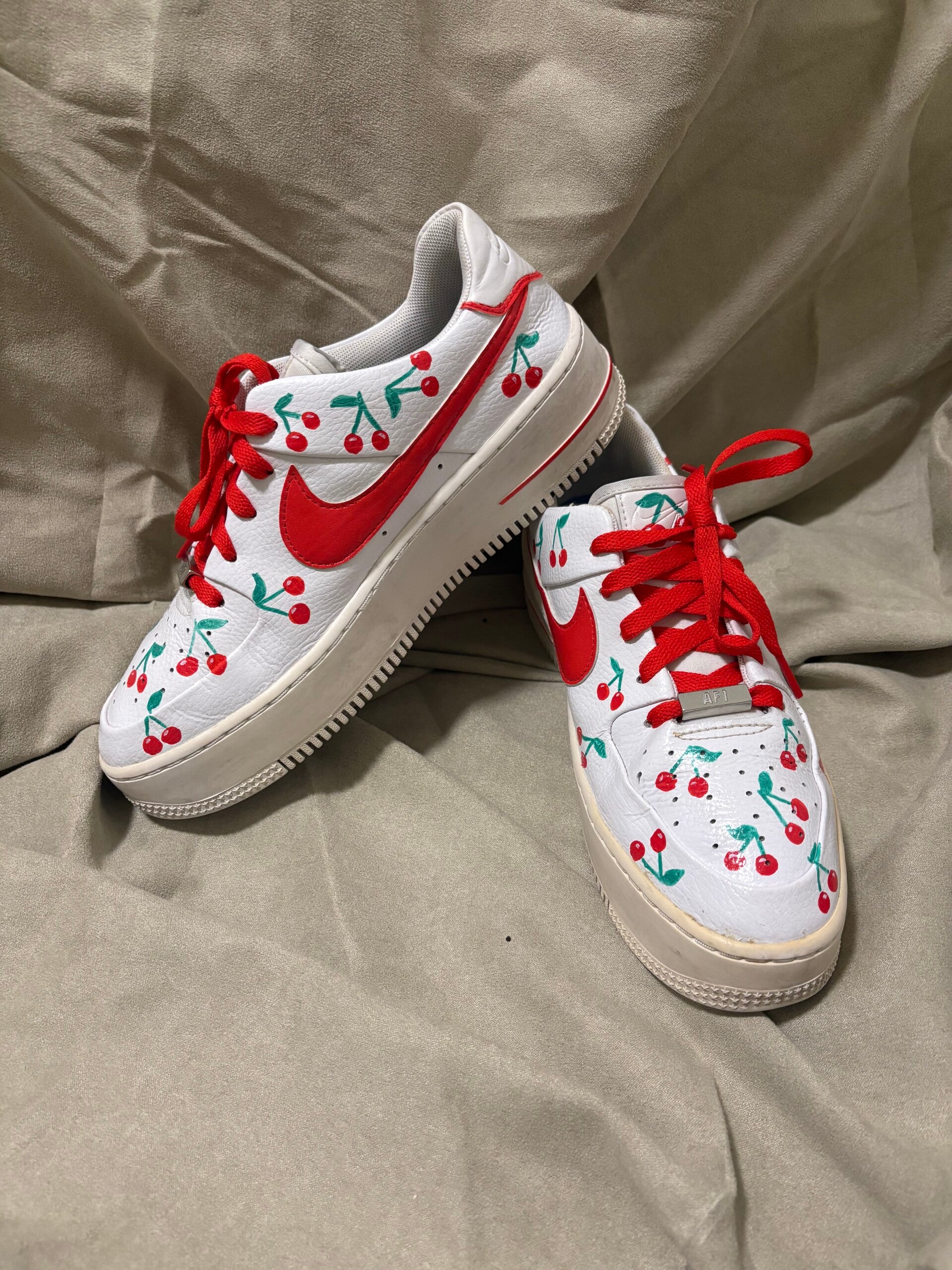 Handbemalte Nike Air Force 1 mit verspieltem Kirsch-Design.